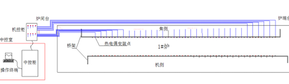 The machine control cabinet is arranged in the furnace room to connect all thermocouples; the machine control cabinet is connected to the central control cabinet of the central control room through the DP bus.