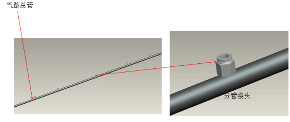 The gas path is arranged such that the center of the furnace body is divided into two gas path headers, and then a pneumatic regulating butterfly valve connected to each single tube through a pipe joint and a gas tube.