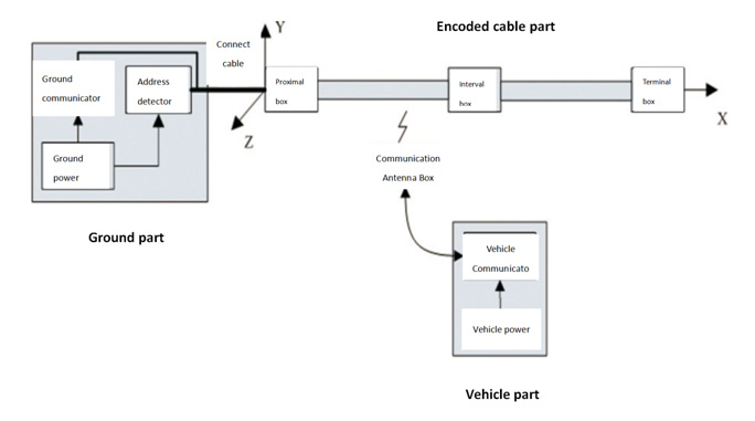 The ground position detection and communication system can realize position detection and data communication by using electromagnetic induction principle. It consists of three parts: ground part, encoded cable part and vehicle part. Ground part contains: ground communicator, address detector, and ground power; Encoded cable part contains: proximal box, encoded cables, interval box and terminal box. Vehicle part contains: vehicle power, vehicle communicator and antenna box. Since it collects position information on ground, it is suitable for single locomotive working or occasions which didn’t require high realtime position information.