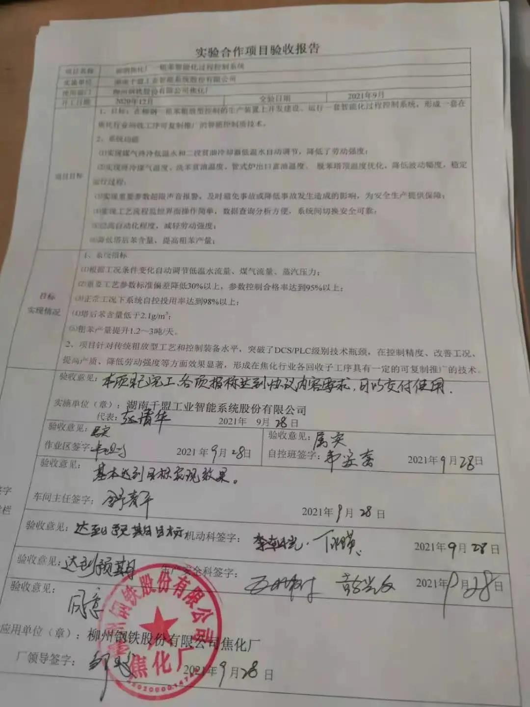 △圖為公司項目驗收報告△