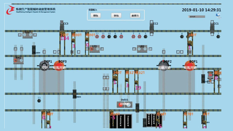 煉鋼智能調(diào)度平臺旨在搭建煉鋼大數(shù)據(jù)平臺,加強生產(chǎn)過程層與經(jīng)營管理層的數(shù)據(jù)集成和分析力度,拓展優(yōu)化技術(shù)的應(yīng)用,主要關(guān)注煉鋼生產(chǎn)環(huán)節(jié)的物料流動及重量數(shù)據(jù)、設(shè)備狀態(tài)數(shù)據(jù)的采集和分析,自動跟蹤對應(yīng)于每爐鋼(爐次)的鐵水、鋼水、廢鋼(廢鋼種類及其重量),記錄其 消耗和產(chǎn)出的重量數(shù)據(jù),實現(xiàn)煉鋼作業(yè)的可視化監(jiān)控,實現(xiàn)各 類資源的智能化調(diào)度,有效提高生產(chǎn)過程的安全性及工作效率。煉鋼智能調(diào)度平臺主要包括:廢鋼管理、鐵水預(yù)處理管理、轉(zhuǎn)爐生產(chǎn)管理、精煉生產(chǎn)管理、連鑄生產(chǎn)管理、鋼包管理以及庫房管理等子系統(tǒng)。
